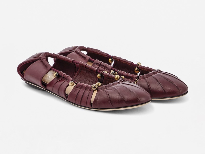 Merlot acts as a base tone for footwear lines, applied on smooth leathers and suedes, with a reading centered on chromatic depth and collection continuity. Across the page, the color is used on flat styles and on options with more present soles, showing how one tone adapts to different urban profiles.