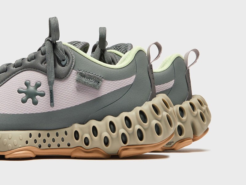 El sistema está compuesto por una entresuela de espuma de eva expandida revestida por una estructura externa de TPU (poliuretano termoplástico), cuya principal característica son los agujeros que posee en su superficie.