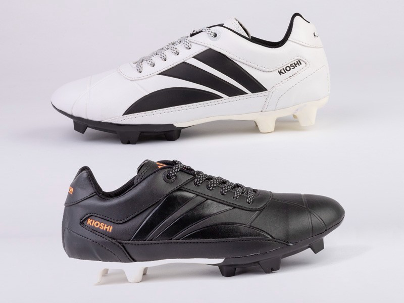 A la producción de calzados, KIOSHI ha sumado pelotas número 5 para fútbol, modelo KAZAN, cosidas a mano, con 100% cuero sintético y en gajos texturados, disponibles en dos colores.