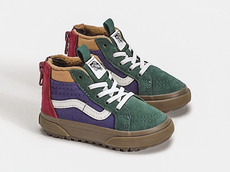 Mid-shaft kids boots and more sport-driven sneakers adopt outdoor cues: toe reinforcements, strong paneling, and deeper treaded outsoles. Skate-leaning options with more robust soles also appear, widening the urban-exterior range.