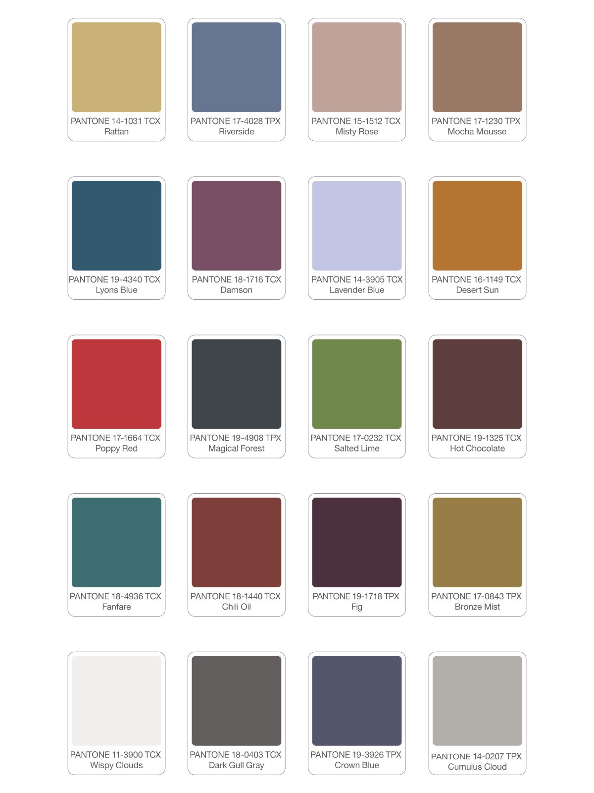The foundation is built on earthy hues and warm neutrals such as Hot Chocolate, a dark tone, and Mocha Mousse, a creamy medium brown, both of which express stability, sophistication and a return to authenticity.