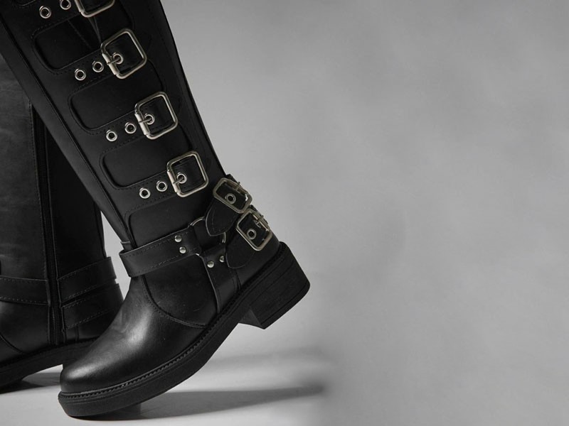 One or several buckles are essential, both functional and decorative, crossing the shaft or wrapping around the ankle. Some models also incorporate other metallic accessories, such as studs, rings, and chains, which reinforce their rock or grunge style.
